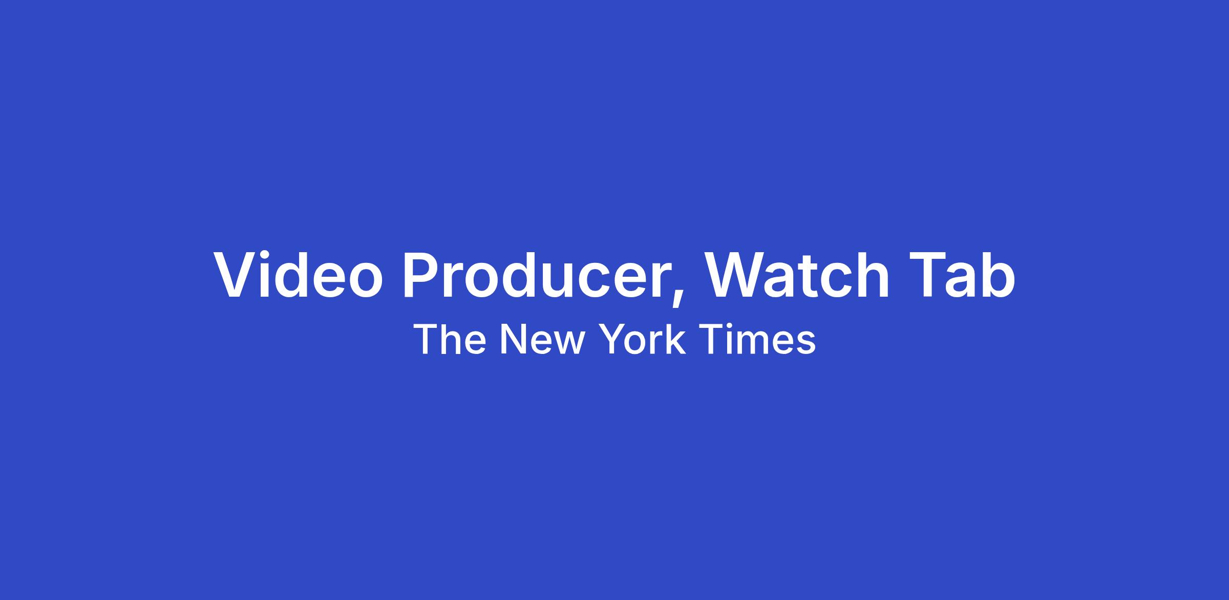 The Video department is looking for a Video Producer to help produce and publish short-form video journalism for the Watch Tab, where we feature the expertise of Times journalists on-camera, news updates, on-the-ground reporting, pioneering Visual Investigations, and video podcasts. This role is central to making our best work discoverable and compelling in a mobile, vertical-video format.