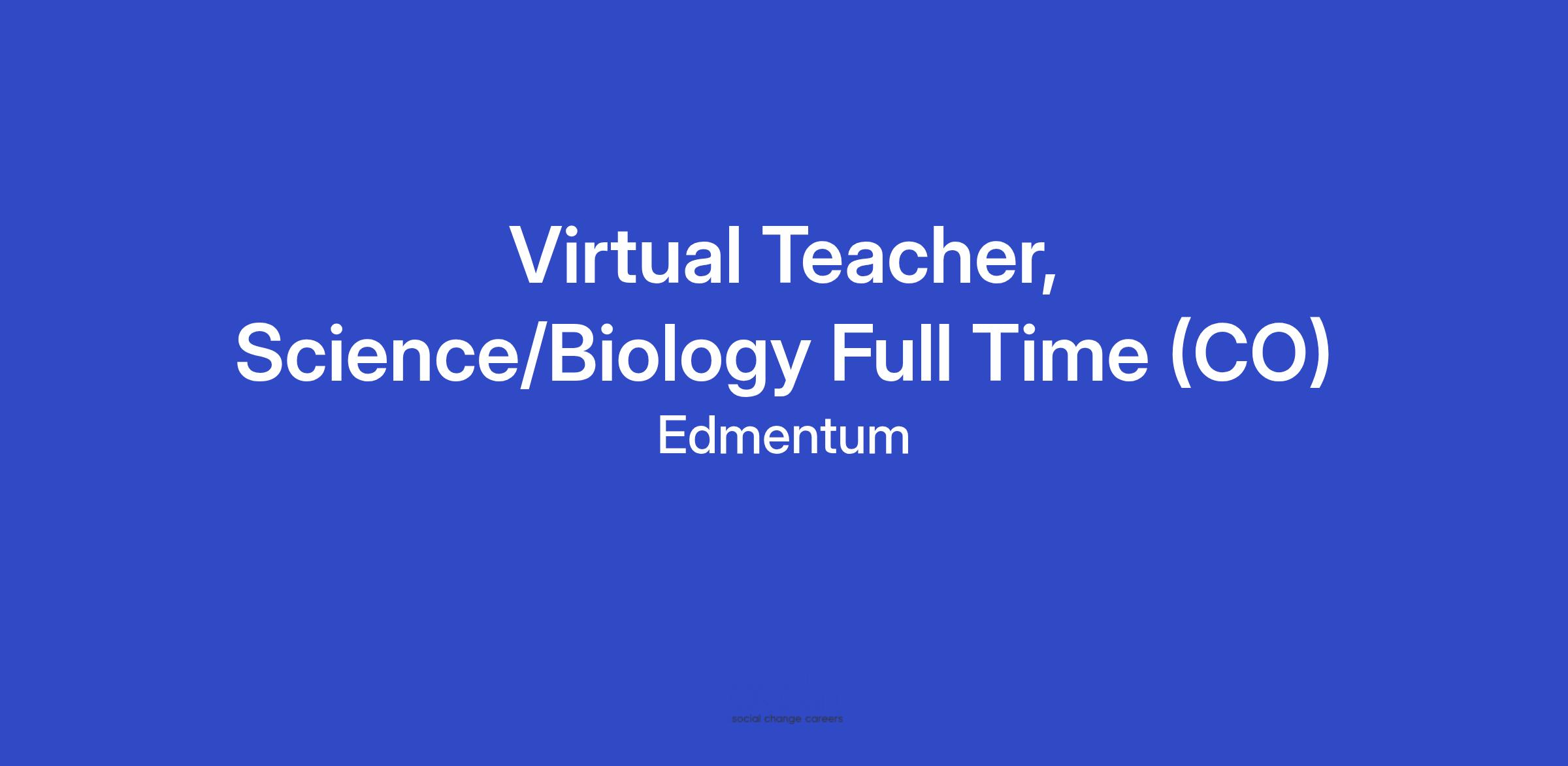 Active state teaching license with a Science endorsement in Biology. Preferred state licensure from CO or IN AND