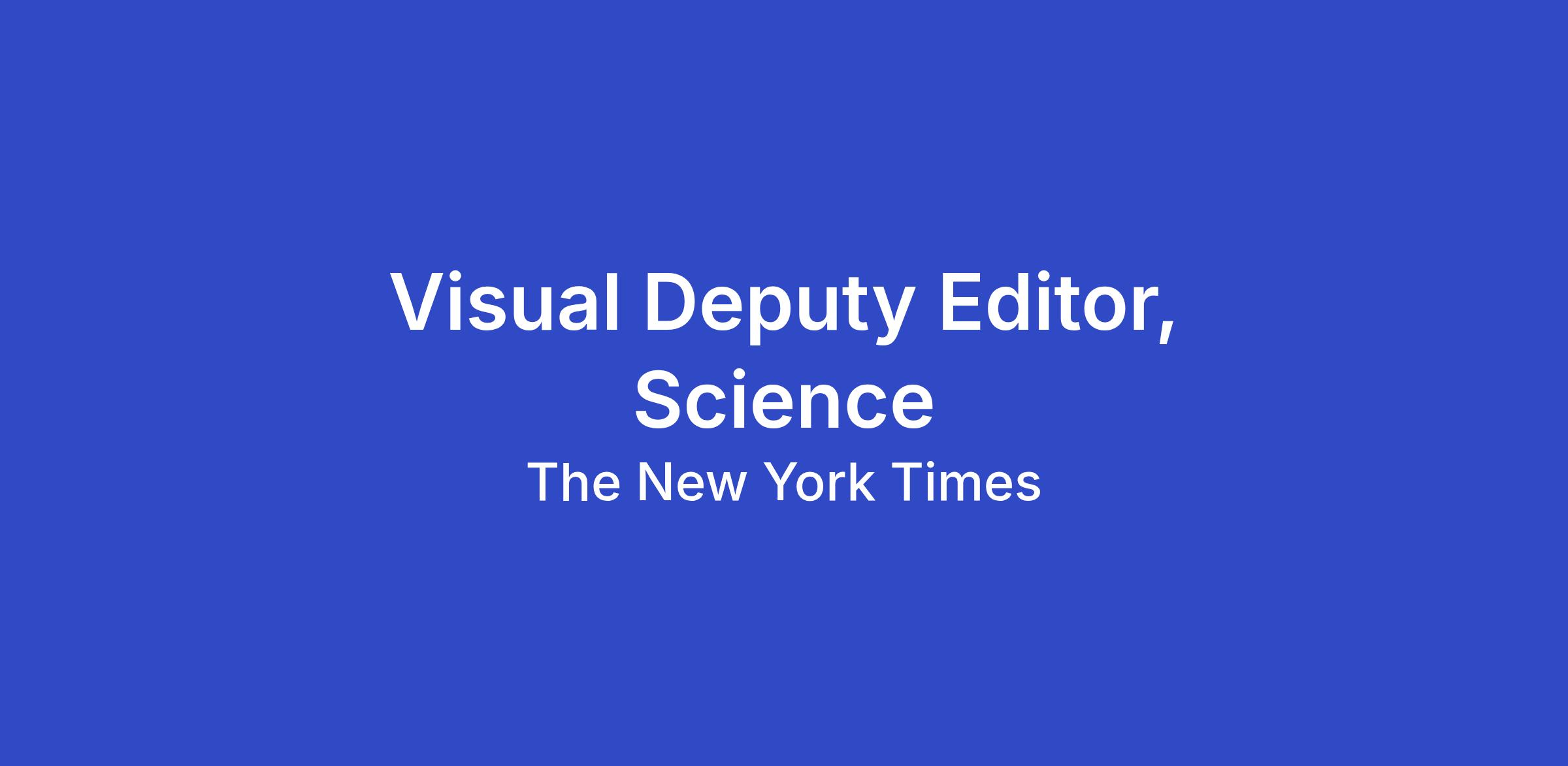 The Science desk is seeking a creative and ambitious editor to lead visual journalism that helps people understand the world of science in compelling and surprising ways.The Science desk is a highly collaborative team; editors and reporters work closely together to tell stories that resonate with readers. You will be part of the desk’s leadership group, responsible for setting our news and enterprise goals and then realizing our ambitions. You’ll coach and manage the work of journalists while also partnering with the Times’s visual journalists to help create a heartbeat of engaging projects that leverage text, video, graphics, photography or a mix of forms.