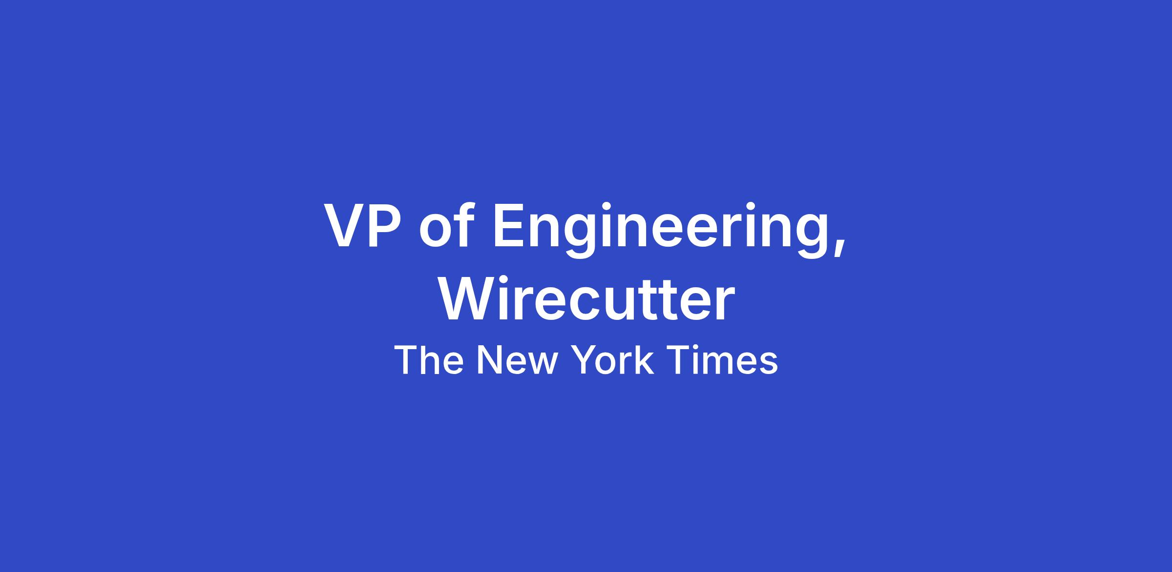 Wirecutter is looking for a seasoned Vice President of Engineering to lead the next chapter of our digital platform evolution in the era of A.I. You'll drive technological innovation and our technical A.I. strategy, shape how we build and ship product, and help millions of readers make smarter decisions about how they shop for and use products every day. Our mission is to be the most trusted recommendation service on the internet — and you'll be central to making that happen.