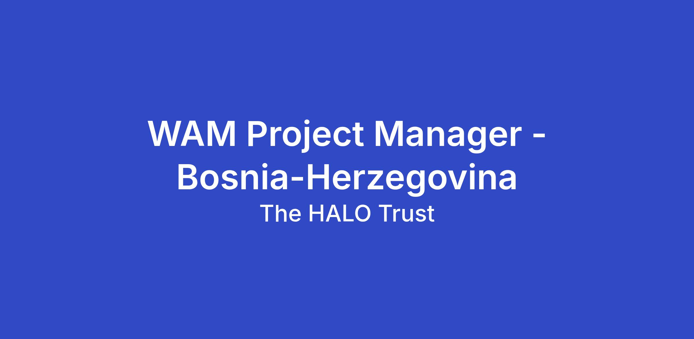 - Pursue and develop new funding opportunities in BiH with support from the WAM PM, WAM Donor Relations Manager and other HALO HQ departments