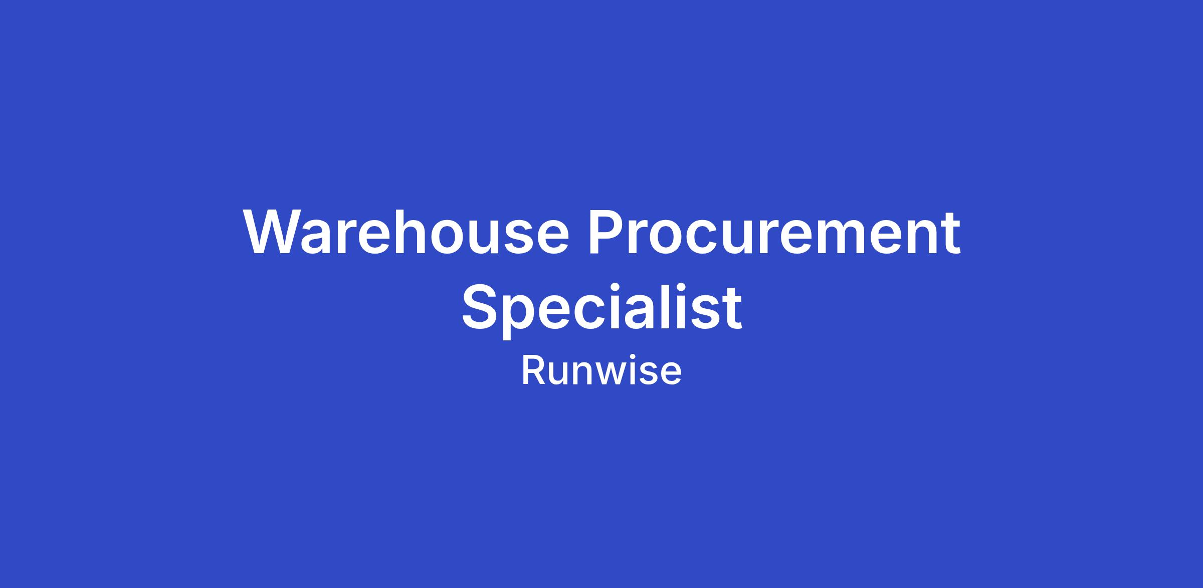 Runwise is looking for a highly motivated, results-oriented Warehouse Procurement Specialist who is eager to learn.