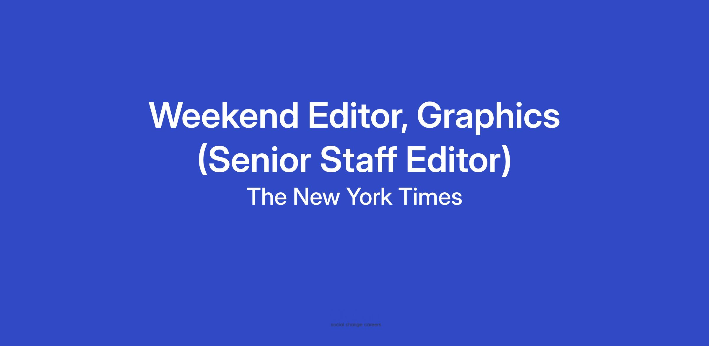 The New York Times is an industry leader in visual journalism, excelling in graphics and design, photography and video. The Graphics team at The New York Times is seeking a versatile and experienced visual editor to cover breaking news on the weekend and to publish timely graphics and visual stories.