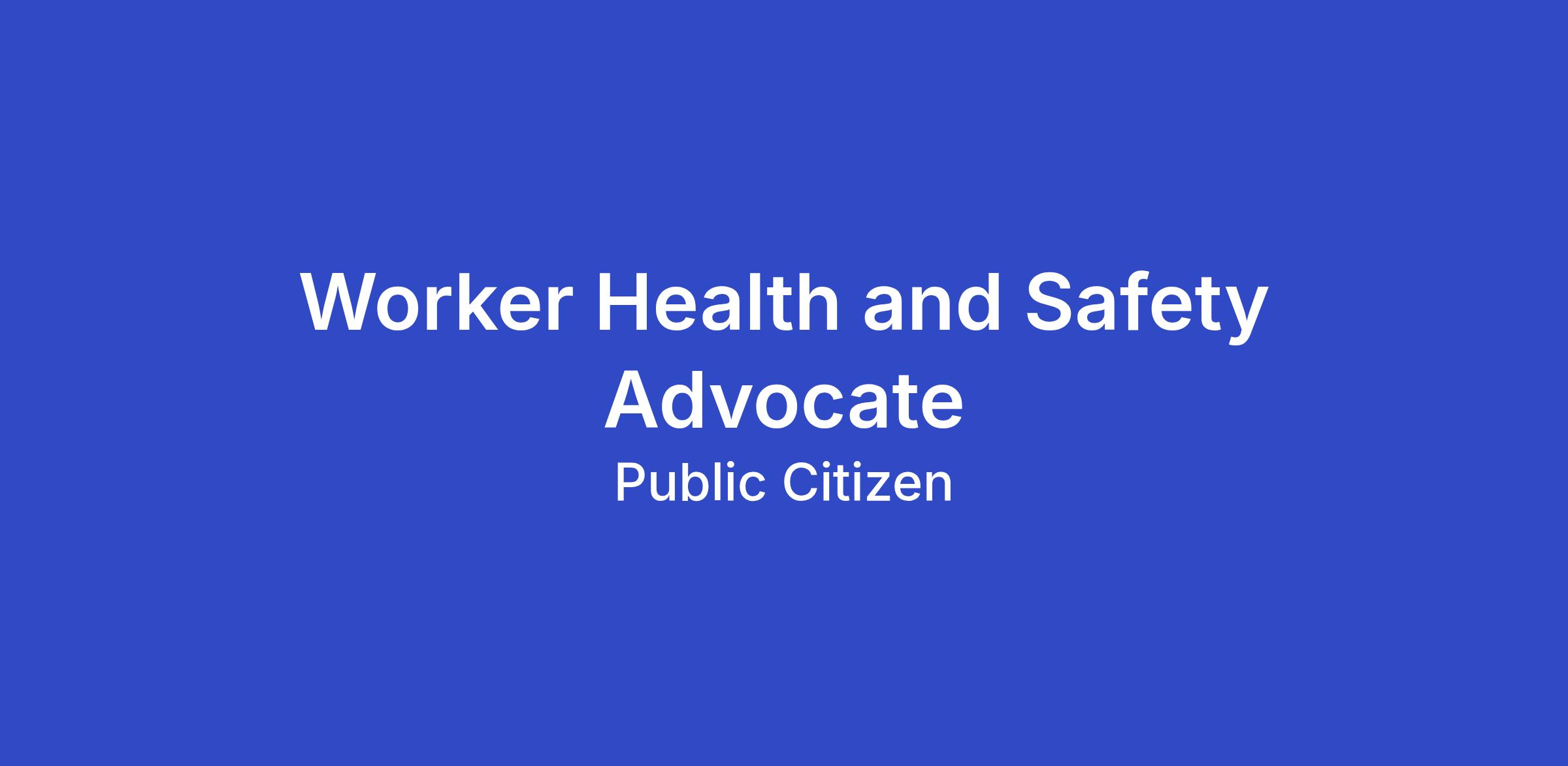 GENERAL DESCRIPTION OF POSITION: The worker health and safety advocate will play a leading role in managing Congress Watch's policy advocacy on occupational health and safety-- including in the topic areas of strengthening and enforcing workplace safety protections, whistleblower rights, heat stress impacts on worker health, appropriations implications, and other topics as necessary-- and manage related public education and outreach.