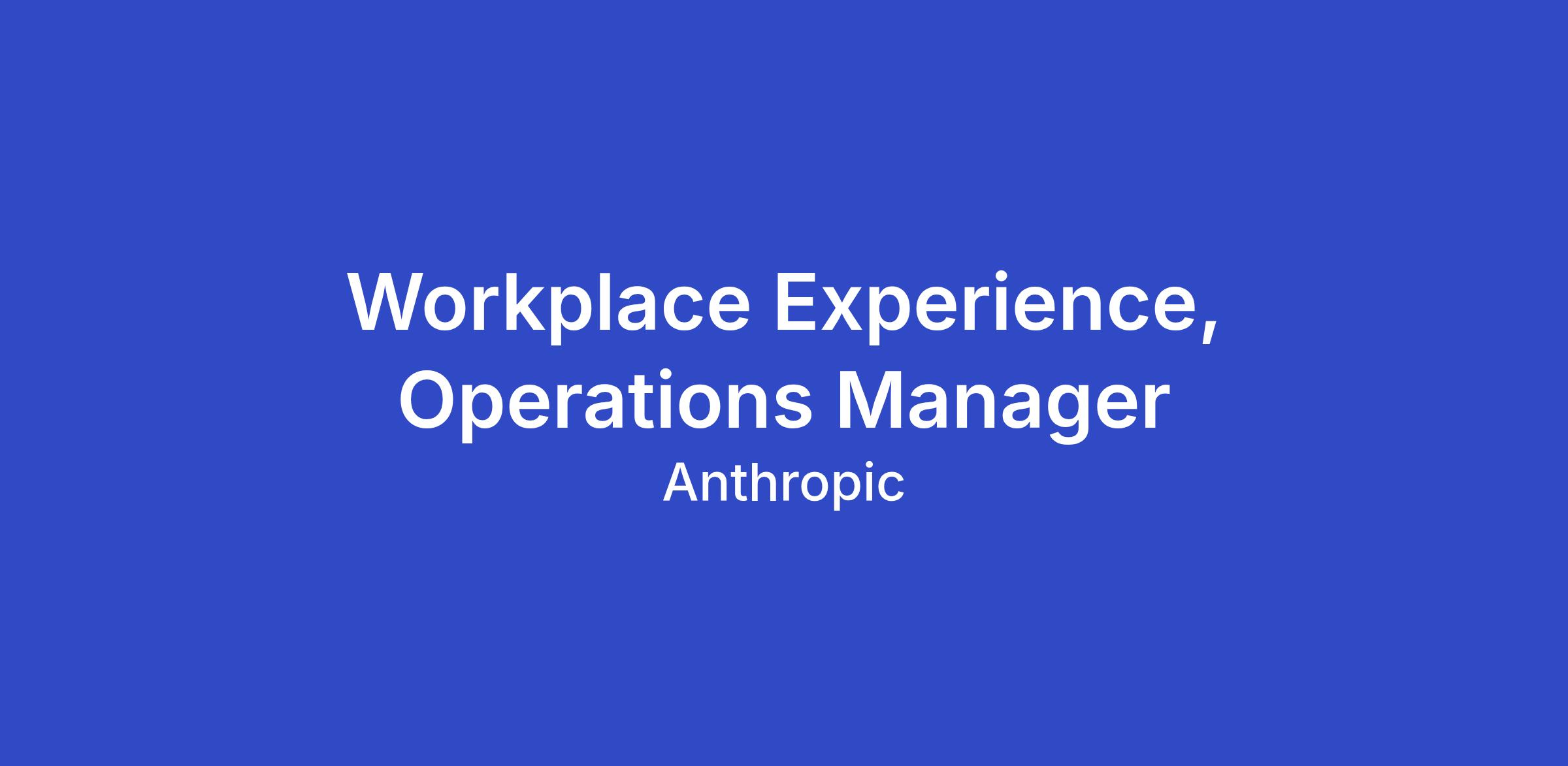 We're seeking an experienced Workplace Experience Operations Manager to own end-to-end operations for our Executive Briefing Center at our San Francisco headquarters. Our EBC is where Anthropic hosts customers, partners, policymakers, and other high-profile visitors - one of the most visible spaces at the company.This role is accountable for: the polish of the space, the warmth of the welcome, and the details that make a visit memorable.