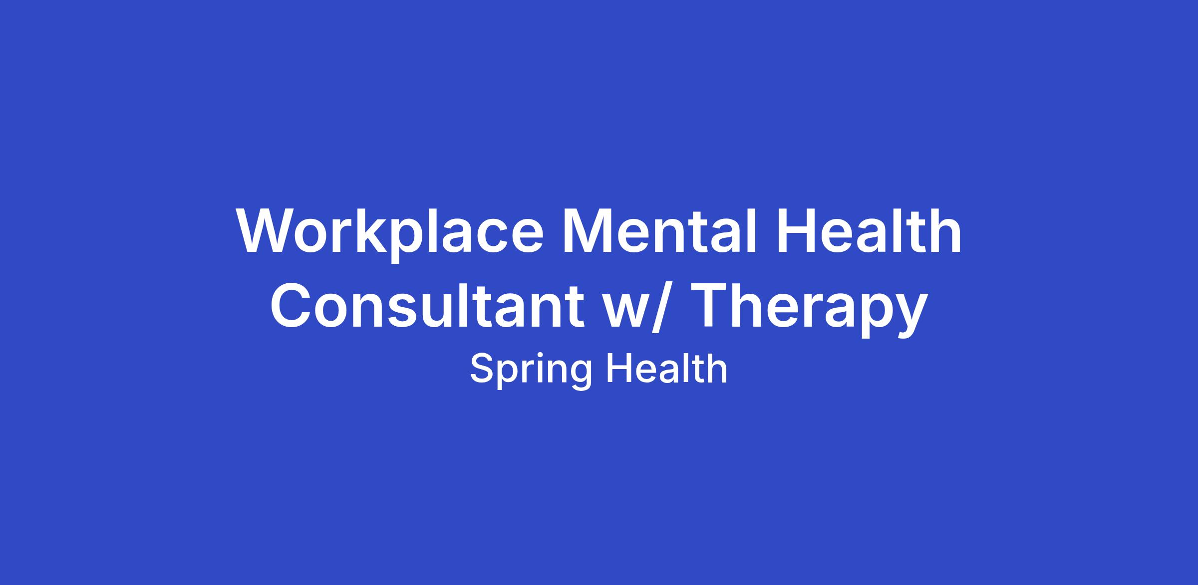 As a Workplace Mental Health Consultant, you will provide individual therapy to employees, management consultations, trainings, critical incident response, and assessment and referral mental health support to employees at a Fortune 500 company in the financial services and insurance industry. You may also provide consultation to HR, program managers, and supervisors on workplace and organizational issues. This role will report to the Spring Health Clinical Manager.