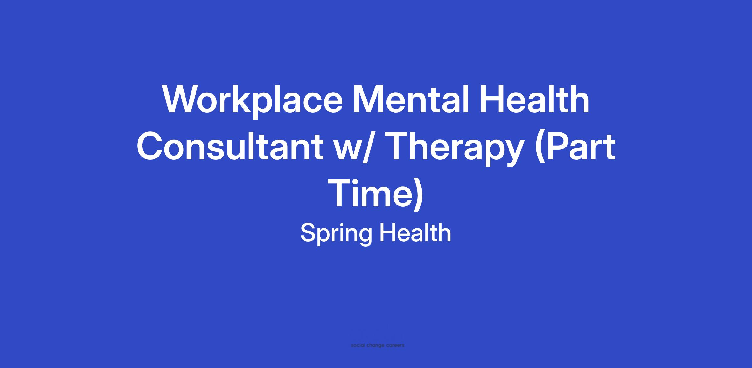 As a Workplace Mental Health Consultant, you will provide individual therapy to employees, training, critical incident response, and assessment and referral mental health support to employees at a multinational pharmaceutical company who is a major player in the healthcare industry. You may also provide consultation to HR, program managers, and supervisors on workplace and organizational issues. This role will report to the Spring Health Clinical Manager.